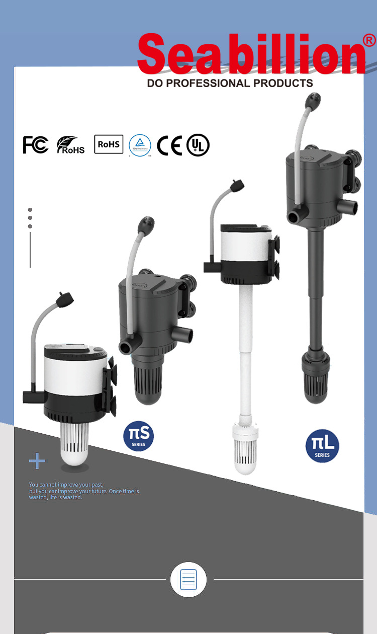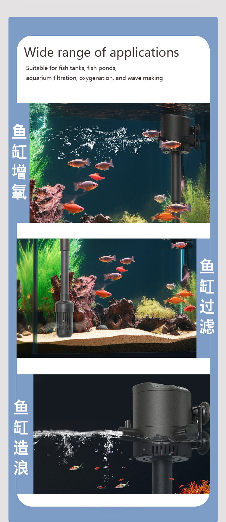 aquarium pump: aquarium pump integrates four functions: wavemaker, oxygenation and water circulation. The flow rate of 2000L/H, power of 25W.